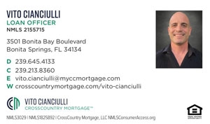 Contact InformationWebsite: http://www.crosscountrymortgage.com/vito-cianciulliPhone: 239-213-8360 Hours: Cell 239-213-8360 |
